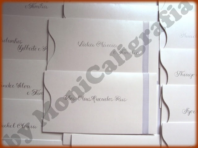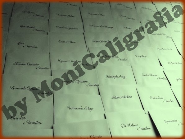 MONICALIGRAFIA trabalha com caligrafia artística feita a bico de pena, com vários tipos de letra para convites de casamento, formatura, festa de 15 anos (debutantes), aniversário, bodas, batizado, eventos em geral. Subscrição também em tags, cartões, diplomas, certificados, livros de assinaturas (presença), poesias, orações, entre outros.