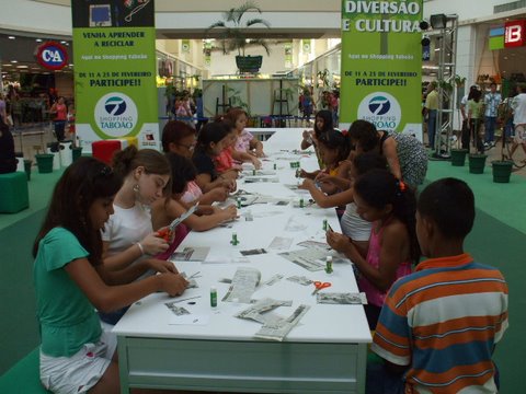 Atelier de criação e produção de brindes utilizando material alternativo e embalagens pós-consumo.
